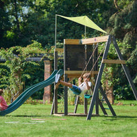 Introducing the Plum Siamang Playcentre featuring an 8ft Slide, Cargo Net, Sandpit, Chalk Wall and Shade Cover! Hey there, adventure-loving familie...